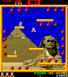 Bomb Jack debuted in arcades, designed by Tehkan (now known as Tecmo), and quickly became a massive hit. Its success led to ports on various home systems, ensuring its legacy in gaming history. The game features a hero, Bomb Jack, who can perform high jumps and float, tasked with collecting 24 red bombs on each screen while avoiding enemies like birds and mummies.