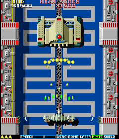 The Sega Mega Drive version, titled Slap Fight MD, was developed by M.N.M Software, featuring new levels, graphics, and music by renowned composer Yuzo Koshiro. This version included a special mode conceived as the “ultimate version,” offering a wider range of strategic play.